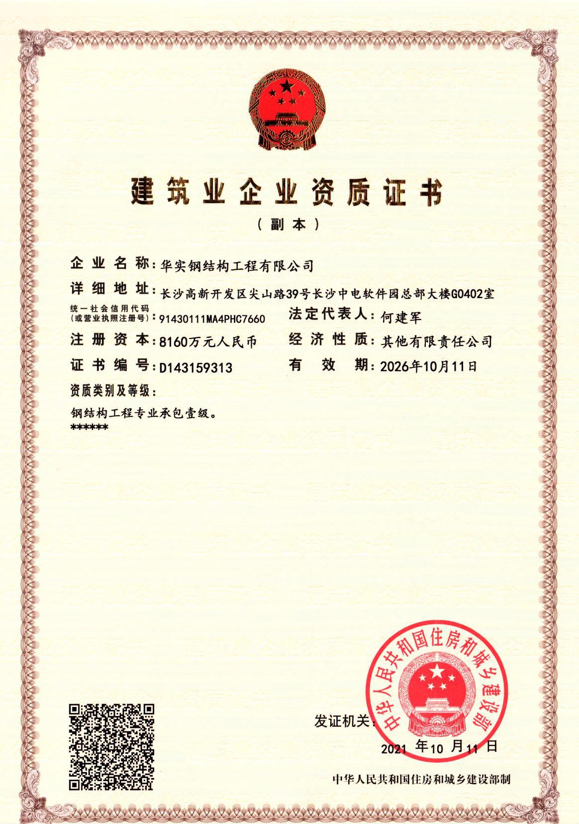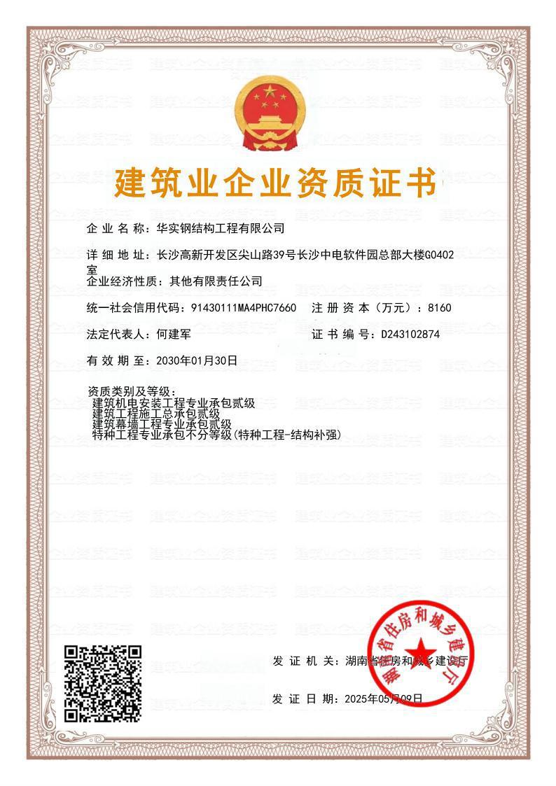 華實鋼結(jié)構(gòu)工程有限公司是華實建設(shè)集團有限公司的專業(yè)鋼結(jié)構(gòu)子公司,鋼結(jié)構(gòu)工程廠家,公司擁有鋼結(jié)構(gòu)工程專業(yè)承包壹級資質(zhì)、建筑工程施工總承包貳級資質(zhì)等建筑資質(zhì),注冊資金8160萬,公司生產(chǎn)制造基地湖南泰成鋼結(jié)構(gòu)有限公司,坐落于寧鄉(xiāng)市大成橋工業(yè)園,自成立以來一直致力于鋼結(jié)構(gòu)產(chǎn)品研發(fā)、設(shè)計、制造、施工、銷售業(yè)務(wù),具備按期保質(zhì)交付客戶的全流程保障的專業(yè)實力,主要業(yè)績遍布國內(nèi)及海外市場。